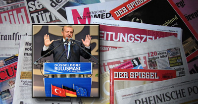 Recep Tayyip Erdoğan’ın Düsseldorf'taki konuşması Alman medyasının pek hoşuna gitmedi.Berlin (mt) – Başbakan Recep Tayyip Erdoğan’ın Düsseldorf’ta yaptığı konuşma Alman medyasında genelde olumsuz yankılara neden oldu. 'Münchner Merkur' gazetesi, Erdoğan’ın Düsseldorf konuşmasını 'sanki eksklav topraklarda Türk tebaasını ziyaret eden' bir hükümet başkanı edasıyla yaptığı kanısında. Gazete bu tutumu destekler ifadeyi de örneğin Erdoğan’ın şu sözlerinde tespit ediyor: 'İşte en son Libya'da olduğu gibi, benim vatandaşım dara düştüğünde, benim vatandaşım imdat dediğinde, kendisine uzanacak bir el beklediğinde bütün imkânlarımızla ona koşuyor, onun imdadına yetişiyoruz.' Almanya ile Libya’nın aynı kefeye konduğu kanısına varan gazeteye göre bu karşılaştırma küstahça bir yaklaşım.