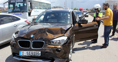 Samsun'un Çarşamba ilçesinde meydana gelen trafik kazasında 4 kişi yaralandı. Alınan bilgiye göre, Ordu'dan Samsun yönüne giden İsa Kara yönetimindeki D SI 6155 Almanya plakalı otomobil, Yeşilırmak Köprüsü'nde aynı yönde seyreden Salim Cürebal'ın kullandığı 54 AC 728 plakalı otomobile çarptı. Kazada yaralanan Salim Cürebal ile araçta bulunan Aynur Cürebal (41), Rümeysa Dilek Cürebal (17) ve Nurten Özcan (34), 112 Acil Servis ekiplerince Çarşamba Devlet Hastanesine kaldırıldı.