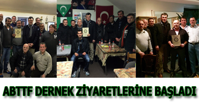 Avrupa Batı Trakya Türk Federasyonu (ABTTF), 2014 yılı geleneksel üye dernek ziyaretlerine start verdi. İlk ziyareti 7 Aralık’ta Mülheim’de yasayan Batı Trakya Türklerine yapan ABTTF heyeti, daha sonra 14 Aralık’ta Halver ve Bonn’da bulunan dernekleri ziyaret etti. Ziyaretlerde ABTTF Başkanı Halit Habip Oğlu ile birlikte yönetim kurulu üyelerinden Sami Yusuf ve Mehmet Hüseyin’in yanısıra disiplin kurulu başkanı İsmail Aptioğlu da hazır bulundu.
