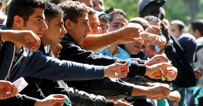 İŞLEMLER UZUN SÜRÜYORİşlemlerin uzun sürmesi sebebiyle sığınmacılar günlerce dairenin bahçesinde beklemek zorunda kalıyor. Kuyrukta bekleyen sığınmacılarla güvenlik görevlileri arasında zaman zaman tartışmalar çıkıyor. Sığınmacılara, gönüllü çalışan vatandaşlar içecek dağıtıyor. Uzun süre sıra beklemek zorunda kalan sığınmacıların bir kısmı çimlerin üzerinde yatıyor, bazıları da burada kurulan iki çadırda kalıyor.