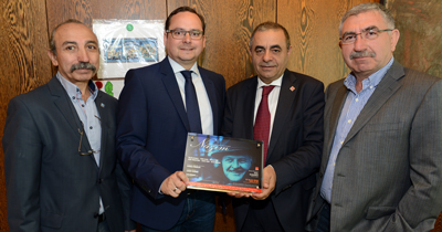 CHP Köln Derneği Başkanı Günay Çapan, Essen Ana kent Belediye Başkanı Thomas Kufen'e Nazım Hikmet Plaketi verdi. Almanya’da CHP Köln Derneği Başkanı Günay Çapan, CDU'lu Essen Ana kent Belediye Başkanı Thomas Kufen'e Nazım Hikmet Plakatını verdi. 31 Ocak'ta Essen kentinde düzenlenen ve 8 bin kişinin katıldığı şenliği onurlandıran, destek veren Thomas Kufen'e Nazım Hikmet Vakfı ve CHP Köln kültür Derneği adına “Nazım Hikmet Plakatı” verildi. Essen Belediye Saray'ında gerçekleşen ve sıcak bir atmosferde geçen ziyarette Günay Çapan, geçtiğimiz 31 Ocak'ta organize ettikleri Almanya'nın en büyek kültür şenliğinin Türk toplumunu birleştirdiğine işaret etti.