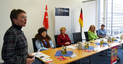 TD-IHK olan Türk Alman Ticaret ve Sanayi Odası Girls’ Day - Genç Kızlar Günü çerçevesinde Berlin’de öğrenciler için bir bilgilendirme günü gerçekleştirildi. Yaklaşık 40 Berlin’li kız öğrencinin büyük ilgiyle katıldığı etkinlikte genç kızların iş hayatındaki olanakları ele alındı. Etkinliğe Berlin Eyaleti Çalışma, Uyum ve Kadınlar Bakanlığı Müsteşarı Barbara Loth, TD-IHK Yönetim Kurulu Üyesi Faize Berger, Girls’ Day Eyalet Koordinasyon Komitesi Üyesi Almut Borggrefe (LIFE e.V.), Berlin Polis memuru Semra Kılıç ile biyolojik-teknik asistan ve 'sista abla' proje rehberi Derya Kılınç katıldılar.Faize Berger selamlama konuşmasında: 'Türk-Alman girişimciler derneği olarak genç insanların mesleki eğitimine büyük önem veriyoruz. Bu yüzden üç yıldır Girls Day projesini destekliyoruz ve özellikle Türk kökenli şirketleri katılmaya davet ediyoruz.' dedi.
