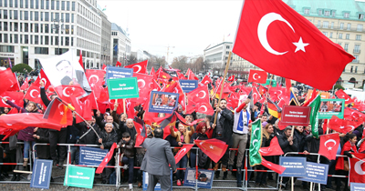 Almanya'daki Türkler, başkent Berlin'de terörü lanetlemek ve demokrasiyi desteklemek için bir gösteri düzenledi. Federal Meclis'in yakınındaki tarihi Brandenburg Kapısı'nın önündeki Pariser Platz Meydanı'nda gerçekleştirilen gösteri, "Teröre Lanet, Demokrasiye Davet" sloganıyla yapıldı. İstiklal Marşı'nın ve Alman milli marşının okunduğu gösteride, Türk ve Alman bayrakları ile Cumhurbaşkanı Recep Tayyip Erdoğan'ın fotoğrafının yanı sıra üzerinde "Terör insanlık suçudur", "Türkiye 3 milyondan fazla sığınmacı barındırıyor", "Terörün rengi, dini, ırkı yoktur" ve "Avrupa terörizme destek vermeyi durdur" yazılı dövizler taşındı.