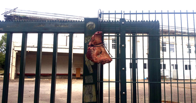 Cami kapısına domuz kellesi astılar
