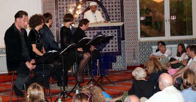 Almanya'nın Münih kentindeki DİTİB Mehmet Akif Camisi'nde bir tiyatro eseri sergilendi. Münih Şehir Oda Tiyatrosu sanatçıları Björn Bicker'in 'Urban Prayers' (Kentsel dualar) adlı eserini kilise ve sinagogtan sonra DİTİB Mehmet Akif Camisi'nde sergiledi. Yedi günde yedi dini alanda sergilenen eseri camide dört yüze yakın Alman yerlere oturarak izledi. Dinlerarası diyalog, önyargılar, göçmenlik olgusu ve şehir yaşamı gibi konuları içeren eserin ilk bölümü caminin toplantı salonunda sunuldu. Bu bölümde solo tenör Christopher Homberger bir koro eşliğinde dört eser sundu. Eserin diyalog bölümü ise caminin mescidinde sergilendi. Bu bölümü sanatçılar Edmund Telgenkaemper, Çiğdem Teke, Steven Scharf, Wiebke Puls ve Stefan Scharf seslendirdiler. Gösteri öncesi ve sonrası caminin din görevlisi Hüseyin Acar Kuran'dan Meryem süresinde ayetler okudu. DİTİB Dinler arası diyalog gönüllüsü Meryem Turan, izleyicilere cami hakkında bilgi verirken, gösteri sonunda katılanlara Türk mutfağından çeşitli yemeklerikram edildi.