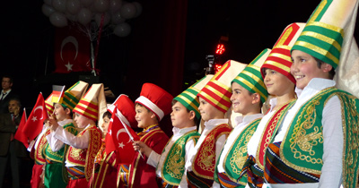 İstiklal marşının ardından mehter marşı eşliğinde seyircilerin arasından sahneye mehteranlara has adımlarla yürüyerek çıkan çocuklardan oluşan mehter takımı salondakilerden büyük alkış aldı. Mehter takımının mini gösterisinin ardından gösteri yapacak tüm öğrencilere güller dağıtıldı. Dağıtılan güller ile salondakileri selamlayan çocuklar ile önce hatıra fotoğrafı çektiren Düsseldorf Başkonsolosu Alattin Temur daha sonra salondakilere hitap etti.