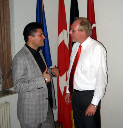 Sosyal Demokrat Parti (SPD) Anakent Belediye Başkanı adayı Jürgen Brandt gazetemiz Almanya Bülteni’nin yayın politikası ve haber anlayışı hakkında Genel Yayın Yönetmenimiz Arif Şentürk’ten bilgi aldı. Çok samimi bir ortamda yapılan görüşmede Genel Yayın YönetmenimizArif Şentürk : ' Yayın alanımızı sadece Almanya ile sınırlı tuttuk. Burada yıllardır yaşamakta olan ve artık Almanya’nın yeni yerlileri olan Almanyalı Türkler’in yaşadıkları ülkedeki olay ve gelişmelerden haberdar olmalarını gazete olarak çok önemli görüyoruz. Böylece çevrelerinde gelişen ve kendilerini doğrudan veya dolaylı olarak ilgilendiren gelişmelere de katkı sağlamaları hedeflenmektedir. Bu sayede güncel bir konu olan uyum tartışmalarına da en azından basın ve yayın alanında katkı sağlamış oluyoruz.' şeklinde konuştu.