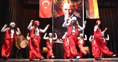 Değişik okullardan Türk ve Alman çocukların gösteriler sundukları Türk Günü’ne destek veren Dachau’un yeni seçilen Sosyal Demokrat Parti (SPD)’li belediye başkanı