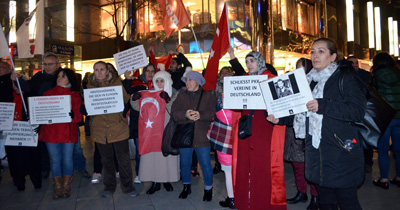PKK’YA DESTEKLERİNİZİ KESİNAlman kamuoyuna çağrıda bulunulan bildiride şu ifadelere yer verildi: ''Bugün sadece terör örgütlerinin yapmış oldukları kahpe saldırılar nedeniyle toplanmıyoruz. Buradan Avrupa ve Kuzey Almanya’nın göbeğinde açık mesaj vermek istiyoruz. Terör örgütlerinin ne denli hain ve acımasız oldukları biliniyor. Avrupa ve Almanya’ya mesajımız şudur: PKK’ya desteklerinizi kesin! Bu doğrultuda Almanya’dan beş talebimiz var; PKK’nın derneklerini kapatın, propagandaları engelleyin, maddi desteği kesin, örgüte silah satışını durdurun ve bir terör örgütü muamelesi yapın." Gösteride ayrıca ''Türk-Kürt kardeştir, PKK kalleştir“ sloganları atıldı. Bu arada bir grup terör örgütü yandaşı, kalabalığa sözlü tacizde bulundu. Terör destekçileri polis müdahalesiyle uzaklaştırıldı.