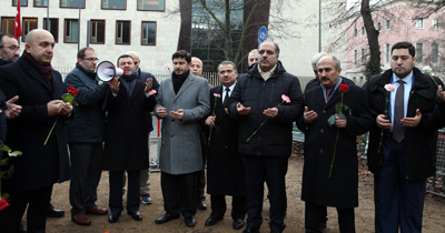 Almanya’da faaliyet gösteren Türk sivil toplum kuruluşlarının temsilcileri, İstanbul'da Ortaköy'de bir gece kulübüne düzenlenen terör saldırısını kınadı. Türkiye'nin Berlin Büyükelçiliği önünde toplanan dernek temsilcileri, burada basın açıklamasının ardından dua etti. Basın açıklamasında, Ortaköy'de yılbaşı gecesi düzenlenen terör saldırısını kınamak için toplanıldıklarını ifade eden gruptakiler, bu alçak saldırı karşısında her daim Türkiye’nin yanında olacaklarını vurguladı.