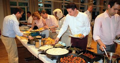 İDİZEM başkanı Mehmet Çelik yaptığı selamlama konuşmasında, Ramazan’da oruç tutmanın Müslümanlar için olan öneminin anlattı. Programı sunan Enes Uğur da konuşmasında Kuran’a göre tüm semavi dinlere tabii olanlara oruç tutma zorunluluğu getirildiğine dikkati çekerek, orucun faziletlerini anlattı. İftar yemeği Bayram Türksezer’in okuduğu ezan sonrası oruç tutanların oruçlarını açmaları ile başladı. İftarda, konuklara açık büfede nefis Türk yemekleri sunuldu.