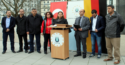 Bildiride ayrıca, son günlerde UETD’nin Hamm, Leverkusen, Essen, Münih, Dinslaken, Grevenbroich ve Hamburg şubelerinin maruz kaldığı şiddet kolayları da kınandı. Bildirinin okunması sonunda Osman Bulut Hoca şehitler için dua okurken, Gönül Kurt duayı Almancaya çevirdi.