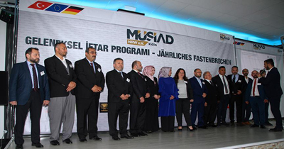 MÜSİAD ile Almanya'nın NRW eyaleti teşkilatı tarafından Köln'de verilen iftarda, Türkiye ile Almanya arasında ticaret yapan iş adamları bir araya geldi. Kentte bir düğün salonunda gerçekleştirilen iftar programında konuşan MÜSİAD NRW Başkanı Bahattin Yılmaz, 1990 yılında İstanbul'da bir grup genç iş adamı tarafından kurulan MÜSİAD'ın ilk yurt dışı şubesinin 1993'te Köln'de açıldığını söyledi. Yılmaz, MÜSİAD'ın dünyanın 68 ülkesinde 11 bin üyesi olan, 45 bin işletmeyi temsil eden ve 1 milyon 600 bin kişiye istihdam sağlayan büyük bir kuruluş haline geldiğini anlattı. Bulundukları ülkeler ile Türkiye arasında faaliyet gösteren iş adamları olarak bir anlamda gönüllü elçilik yaptıklarını belirten Yılmaz, "Yeryüzündeki tüm insanların mutlululuk ve refahını kendi mutluluk ve refahımız, hüznünü ise kendi hüznümüz kabul eder ve üzülürüz. Bunun için bulunduğumuz yerlerde güçlü olmalıyız, bir olmalıyız ve diri olmalıyız." dedi.