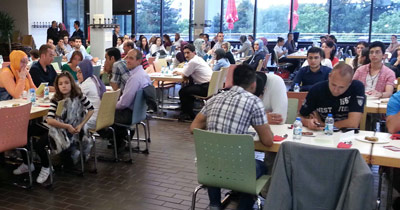 Türk Ünid olan Türk Üniversiteliler Derneği ve US Akademisyenler Platformu'nun Diyanet İşleri Türk İslam Birliği (DİTİB)’nin desteğiyle Köln Üniversitesi Meslek Yüksek Okulu (Fachhochschule Köln)’nun Deutz Kampüsü’nde düzenlediği iftar programına yaklaşık 500 kişi katıldı. Her yıl geleneksel olarak düzenlenen iftarda Türkiye Cumhuriyeti Köln Başkonsolosu Mustafa Kemal Basa, Köln Din İşleri Ataşesi Zekeriya Bülbül, DİTİB Yönetim Kurulu Üyesi Dr. Emine Seçmez, Köln Katolik Kilisesi Dialog Sorumlusu Dr.Thomas Lemmen, KRV Uyum, Çalışma ve Sosyal Bakanlığı Temsilcisi Agnes Heuvelmann, UETD Genel Başkanı Hasan Özdoğan, İslam Kültür Merkezi (VIKZ) temsilcisi Murat Can, İş Bankası Köln Müdürü Tarkan Altaylar, Ford Werke AG -Turkish Resource - biriminden Mustafa Ergün ve işadamlarının yanısıra çok sayıda öğrenci ve akademisyen katıldı.TÜRK VE ALMAN ÖĞRENCİLER İFTARDA BULUŞTU