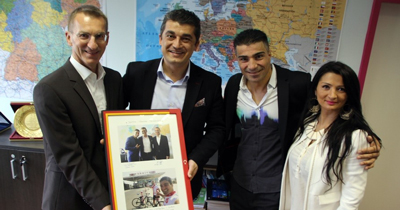 Daha sonra ikili T.C. Karlsruhe Eğitim Ataşesi Gürkan Avcı’ya “Dostluk ve Kardeşlik İçin Pedal” yolculuğun en önemli iki fotoğrafının bulunduğu tabloyu hediye etti.