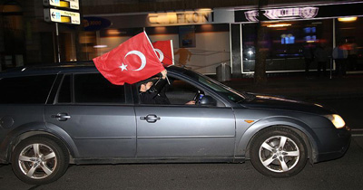 GÜRÜLTÜ GEREKÇESİYLE PARA CEZASIraçlarını Türk bayraklarıyla süsleyip şehir merkezindeki Friesenplatz semtine gelerek araç konvoyu yapmak isteyenlere Köln polisi "gürültü yaptıkları" gibi çeşitli gerekçelerle para cezası uyguladı. Polis engeline rağmen bazı vatandaşlar araç camlarından çıkardıkları Türk bayrakları, mehter marşları ve şarkılarla referandum sonucunu kutladı.