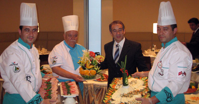 Fırat Sunel’in özel girişimiyle Bolu’dan Düsseldorf’a gelen Bolu Belediyesi aşçıları Recai Ateş, Berat Karataş, Durmuş Aksoy hazırladıkları özel menüyü seçkin davetlilerin beğenisine sundular. Aralarında Kuzey Ren Vestfalya (NRW) Eyalet Parlamentosu Başkanı, bazı bakan, milletvekili, diplomat, müsteşar, üniversite rektörlerinin de hazır bulundukları seçkin Türk ve Alman davetliler için özel olarak olarak hazırlan yemek öncesi davetlilere kısa bir konuşma yapan Düsseldorf Başkonsolosu Fırat Sunel: 'Aynı zamanda aşçı eğitmeni olan aşçılarımız bu akşam hazırladıkları yemeklerle Türkiye’nin çeşitli bölgelerinde bize bir gezinti yapma fırsatı sağlayacaklar. Dünyanın en büyük üç mutfağı arasında yer alan Türk mutfağının en özel aşçıları bilindiği gibi Bolu’dan çıkıyor. Sultanların da aşçılığını üstlenen Bolu’nun aşçılarının hazırladıkları yemeklerle bu akşam misafirlerimizin kendilerini sultanlar gibi hissetmelerini arzu ediyoruz.' şeklinde konuştu.YEMEKLERE TAM NOT