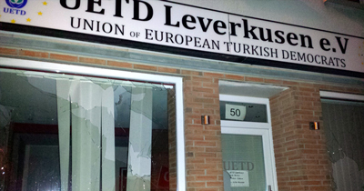 Avrupalı Türk Demokratlar Birliği'nin (UETD) Almanya'nın Leverkusen kentindeki şubesine taşlı saldırı yapıldı. Kimliği belirsiz kişilerce gerçekleştirilen saldırıda binanın pencere camları ve cam kapısı kırıldı. UETD Leverkusen Şubesi Başkanı Mehmet Emin Ünlü, şubelerine birkaç yüz metre mesafede polis karakolu bulunduğunu, daha önce iki kez benzer saldırılara uğramalarına rağmen faillerin yakalanıp cezalandırılmamasının saldırganları cesaretlendirmiş olabileceğini söyledi.