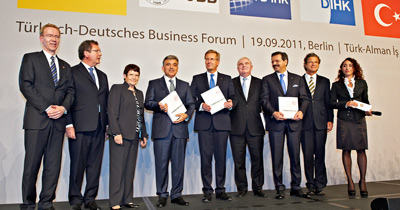 (TD-IHK) geçtiğimiz gün Alman Odalar Birliği DIHK ve Türkiye Odalar ve Borsalar Birliği TOBB ile birlikte Berlin’de Türk-Alman İş-Forumu’nu gerçekleştirdi. Federal Almanya Cumhurbaşkanı Christian Wulff ve Türkiye Cumhuriyeti Cumhurbaşkanı Abdullah Gül’ün onur konuğu olarak katıldıkları program TD-IHK Başkanı Dr. Rainhardt Freiherr von Leoprechting’in selamlama konuşmasıyla başladı. Programa Cumhurbaşkanlarının yanısıra iki ülkenin ekonomi, bilim, siyaset ve medya çevrelerinden 700’e yakın seçkin davetli ile Alman Ticaret ve Sanayi Odası (DIHK) Başkanı Prof. Dr. Hans Heinrich Driftmann ve Türkiye Odalar ve Borsalar Birliği (TOBB) Başkanı M. Rifat Hisacıklıoğlu da katılarak birer konuşma yaptılar.VİZE SORUNU ÇÖZÜLMELİ