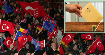 Ankara (mt) – Türkiye’de Haziran ayında gerçekleşecek genel seçimler öncesinde gurbetçilerin de oyunu almak isteyen siyasetçiler birbirleriyle kıran kırana bir rekabet içine girdiler. Merkezi Paris’te bulunan Agence France Presse’in (AFP) Ankara’dan bildirdiğine göre siyasetçiler, Almanya başta olmak üzere Avrupa’nın çeşitli ülkelerinde yaşayan milyonlarca Türk’ün oyunu elde etmek için birbirleriyle büyük bir mücadeleye girdiler. Türk Hükümeti’nin elindeki Avrupalı Türk seçmen sayısı 2,5 milyon civarında. Bu seçmenlerin yüzde 60’ına denk gelen 1,5 milyonluk bölümü Almanya’da yaşıyor.ANAYASA MAHKEMESİ MEKTUPLA OY’U İPTAL ETMİŞTİ