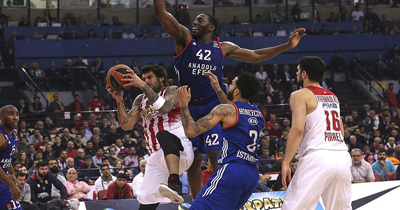Basketbol THY Avrupa Ligi play-off turu ikinci maçında Anadolu Efes, deplasmanda Yunan ekibi Olympiakos'u 73-71 mağlup ederek seride durumu 1-1 yaptı ve ev sahibi avantajını eline geçirdi. Karşılaşmaya etkili başlayarak 6-0'lık seri yakalayan Anadolu Efes, ikinci dakikayı 8-2 önde geçti. Olympiakos, Printezis'in üç sayı çizgisinin gerisinden kaydettiği basketle 6. dakikada 11-10 üstünlük yakaladı. Kalan bölüm, iki takımın da karşılıklı basketlerine sahne oldu ve ilk periyot, lacivert-beyazlıların 23-22'lik üstünlüğüyle tamamlandı. İkinci çeyrek, karşılıklı basketlerle devam etti ve karşılaşmanın 15. dakikası 30-30 eşitlikle geçildi. Hücumda sayı üretmekte zorlanan Anadolu Efes karşısında, tecrübeli oyuncusu Spanoulis'in dış atışlardan bulduğu isabetlerle farkı açan Olympiakos, soyunma odasına 44-37 önde girdi. Üçüncü periyotta oyun üstünlüğünü kaybetmeyen Olympiakos karşısında iyi savunma yapan Anadolu Efes, farkı 3 sayıya indirdi ve final periyoduna 54-51 geride gitti.