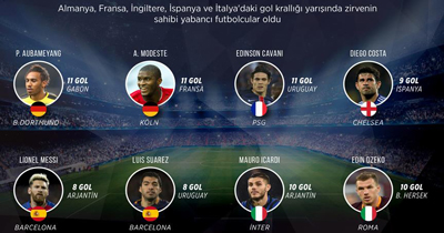 Almanya, Fransa, İngiltere, İspanya ve İtalya'daki gol krallığı yarışında zirvenin sahibi yabancı futbolcular oldu. Avrupa'nın 5 büyük futbol ülkesi kabul edilen Almanya (Bundesliga), Fransa (Ligue 1), İngiltere (Premier Lig), İspanya (La Liga) ve İtalya'daki (Serie A) gol krallığı yarışının zirvesinde bulunan isimlerin tamamı yabancı oyunculardan oluştu. Fransa'da Uruguaylı Edinson Cavani, İtalya'da Arjantinli Mauro Icardi ve Bosna Hersekli Edin Dzeko, Almanya'da Gabonlu Pierre-Emerick Aubameyang ve Fransız Anthony Modeste, İspanya'da Arjantinli Lionel Messi ve Uruguaylı Luis Suarez ile İngiltere'de İspanyol Diego Costa, milli takım arasına girilen Avrupa'da büyük liglerin gol krallığı yarışında zirvede yer alıyor. Türkiye'de ise milli futbolcu Cenk Tosun ile Burkina Fasolu Abdou Razack Traore, 6'şar golle birinci sırayı paylaşıyor.