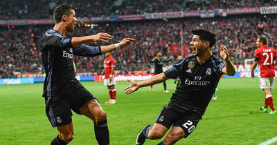 UEFA Şampiyonlar Ligi çeyrek finalinde Real Madrid, Ronaldo'nun golleriyle deplasmanda Bayern Münih'i 2-1 yendi ve üst tura çıkmak adına önemli bir avantaj elde etti. Allianz Arena'da İspanya temsilcisi Real Madrid'i ağırlayan Alman ekibi Bayern Münih, maça hızlı başladı. Sağ kanattan Thiago Alcantara'nın arka direğe kullandığı köşe vuruşunda topa iyi yükselen Arturo Vidal, kafa vuruşuyla Real Madrid ağlarını havalandırdı ve 25. dakikada takımını 1-0 öne geçirdi. Ataklarını sıklaştıran Bayern Münih'te Franck Ribery'nin ceza sahası dışından şutunda top, Real Madrid'in savunma oyuncusu Dani Carvajal'e çarparak kornere gitti. İtalyan hakem Nicola Rizzoli, ceza saha içindeyken meşin yuvarlağın Carvajal'in eline temas ettiğine hükmederek penaltı noktasını gösterdi. Penaltı atışını üstten auta gönderen Vidal, kendisinin ve takımının ikinci gol şansını değerlendiremedi ve ilk yarı ev sahibi ekibin 1-0 üstünlüğüyle sona erdi.